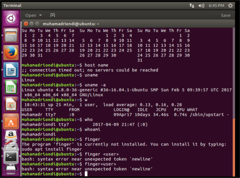 Instruksi $ host name, $ uname, dan $ uname -a untuk melihat identitas mesin